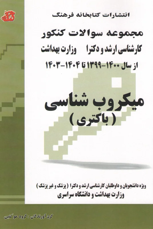 شامل سوالات آزمون کارشناسی ارشد و دکتری وزارت بهداشت سالهای 99 تا 1403 با پاسخ کلیدی که آزمون ارشد شامل دروس : باکتری شناسی ، تک یاخته ، قارچ شناسی ، ویروس شناسی ، ایمنی شناسی ، زبان عمومی و آزمون دکتر ی شامل دروس : باکتری شناسی ، ویروس شناسی ، تک یاخته شناسی و قارچ شناسی ، بیوشیمی ، ژنتیک میکروارگانیسم و ایمنی شناسی می باشد