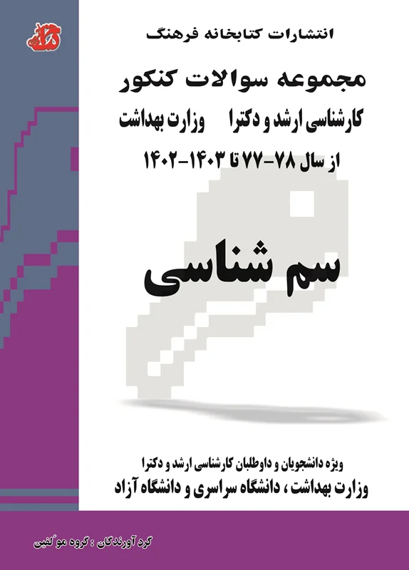 شامل سوالات آزمون کارشناسی ارشد و دکتری وزارت بهداشت سال های 77 تا 1402 با پاسخ کلیدی که آزمون ارشد شامل دروس : بیوشیمی عمومی ، شیمی عمومی ، زیست شناسی عمومی ، سم شناسی ، داروشناسی ، زبان عمومی و آزمون دکتری شامل دروس : سم شناسی ، داروشناسی می باشد